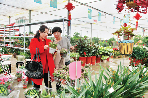 2月16日,市民在忻州城區(qū)七一南路的“陳紅花卉”批發(fā)市場(chǎng)選購(gòu)花卉?!岸拘袆?dòng)”開展以來(lái),忻府區(qū)發(fā)揮區(qū)位優(yōu)勢(shì),大力扶持發(fā)展特色觀賞農(nóng)業(yè),為農(nóng)民增收挖掘新的經(jīng)濟(jì)增長(zhǎng)點(diǎn)。春節(jié)期間,一批像“陳紅花卉”大棚一樣的花卉種植戶獲得了較高的經(jīng)濟(jì)收入。(侯睿 攝)