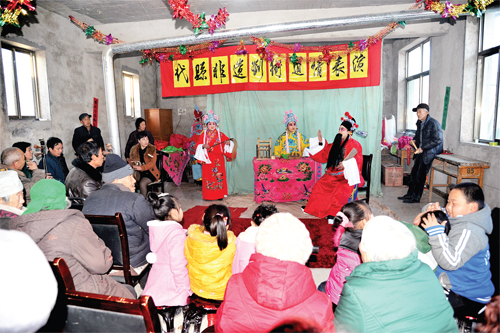 為了搶救劉街道情“非遺”劇種,弘揚和傳承雁門文化,新高鄉(xiāng)劉街村“ 兩委”班子多方籌措資金,購買服裝道具和文武場樂器,于近期成立了由30多人組成的劉街道情劇團,由老藝人傳授技藝。他們經(jīng)過3個多月的精心排練,已排練出《李大開店》、《夜宿花亭》、《雷橫磕枷》、《大上吊》、《劈棺》、《?;稹返?個劇目,將于元宵節(jié)期間亮相于縣城街頭,向全縣人民匯報演出。圖為熱心觀眾觀看劉街道情《李大開店》劇目的排練。(石俊文 劉睿 攝)