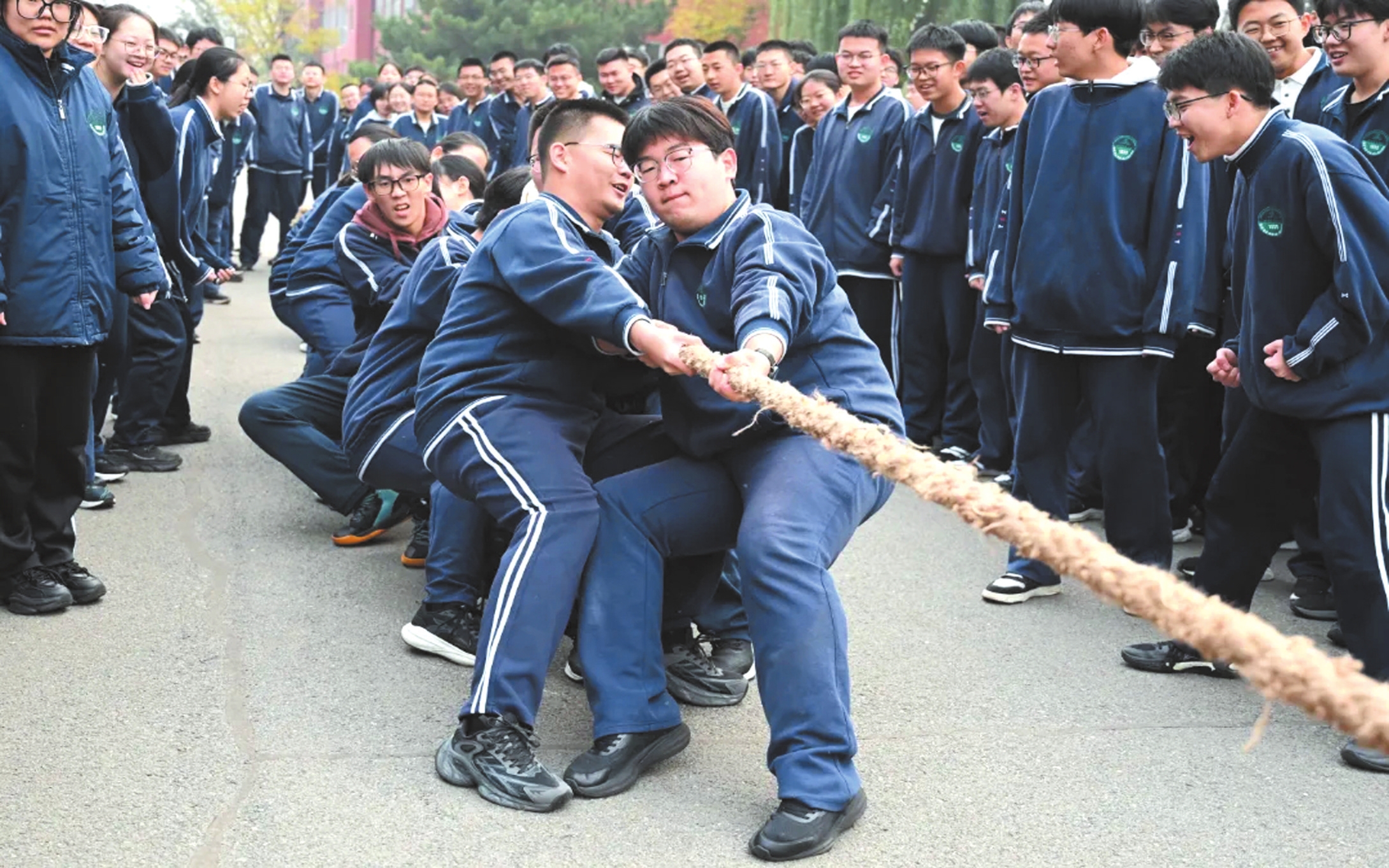 近日,忻州實驗中學第22屆校園文化藝術體育節(jié)拔河比賽舉行。比賽哨聲一響,賽場瞬間沸騰。參賽隊員們緊握長繩,雙腳蹬地,身體后傾,每一個動作都凝聚著集體的力量與智慧。老師們化身為全情投入的啦啦隊長,揮動雙臂,聲嘶力竭地為隊員們指揮節(jié)奏;各班同學則自發(fā)組成陣容強大后援團,將現場氛圍一次次推向高潮。 (記者 馮偉倫攝)