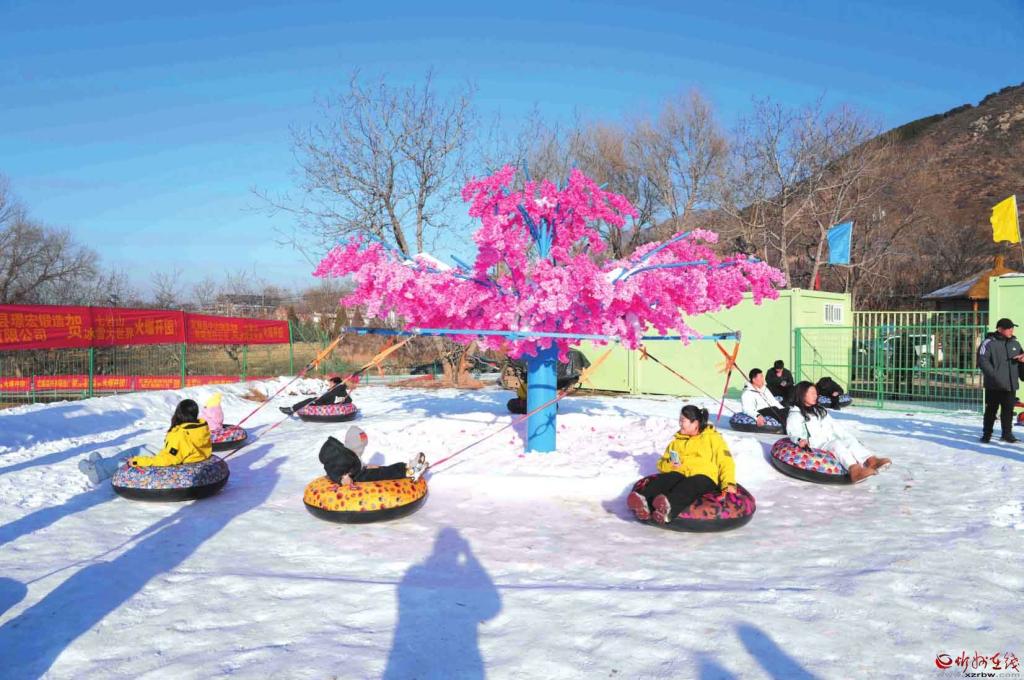 “咻——砰!”伴隨著一陣呼嘯與清脆的碰撞聲,一個(gè)個(gè)彩色雪圈接連滑下,終點(diǎn)處游客的歡呼聲瞬間驅(qū)散了冬日的寒意。