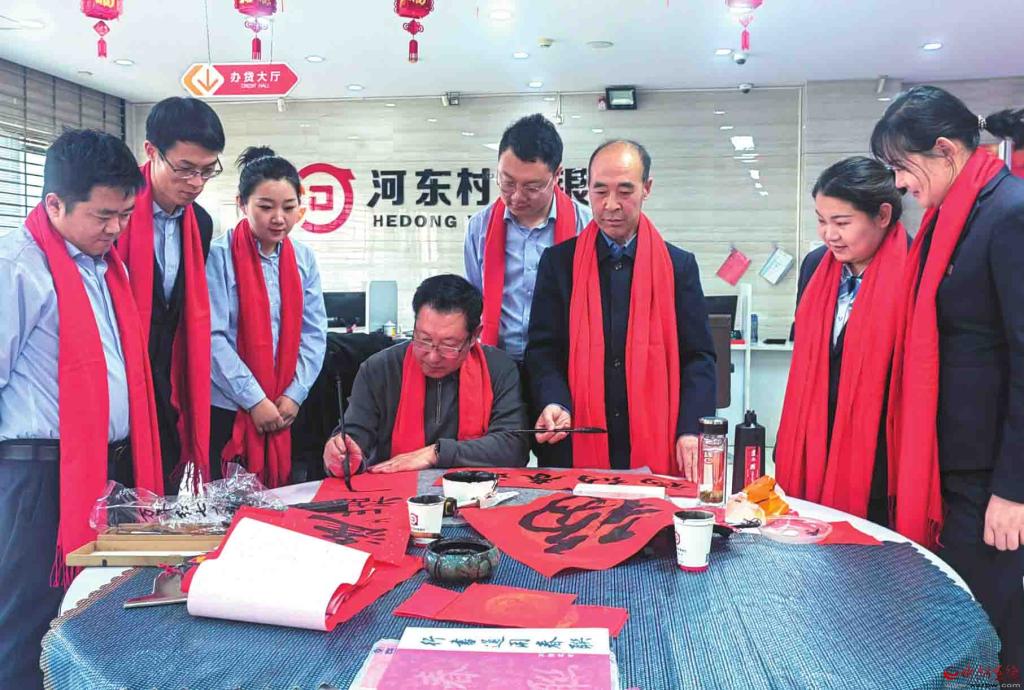 新春到來之際,神池縣河東村鎮(zhèn)銀行邀請當地書法愛好者在營業(yè)大廳現場揮毫潑墨,為前來辦理業(yè)務的客戶書寫春聯,深受群眾稱贊。(楊晉明攝)