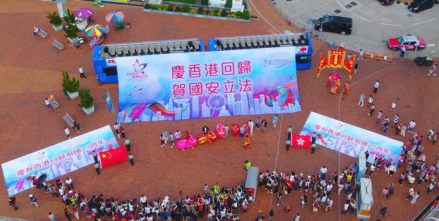 這也是《國歌條例》在香港刊憲生效后的第一個回歸慶祝日,全港一共有50多場奏唱國歌的活動。除了在多個地標奏唱,街頭也不時能聽到市民自發(fā)進行的合唱“快閃”活動。慶委會還舉辦電影《國歌》慶回歸特別專場,電影開始前全場合唱國歌,氣氛熱烈。