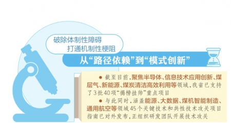 截至目前,聚焦半導(dǎo)體、碳基新材料、信息技術(shù)應(yīng)用創(chuàng)新、煤層氣、新能源、煤炭清潔高效利用等領(lǐng)域,我省已支持了3批40項“揭榜掛帥”重點項目,省財政引導(dǎo)資金2億元,帶動企業(yè)投資7億元。與此同時,涵蓋能源、大數(shù)據(jù)、煤機智能制造、通用航空等領(lǐng)域45個關(guān)鍵技術(shù)和共性技術(shù)攻關(guān)項目指南已對外發(fā)布,正組織研發(fā)團隊開展技術(shù)攻關(guān)。