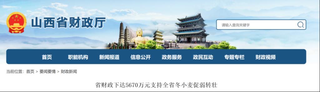 | 山西省財(cái)政下達(dá)5670萬(wàn)元支持全省冬小麥促弱轉(zhuǎn)壯 |