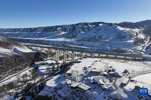 在新疆烏魯木齊縣拍攝的烏尉高速公路(12月23日攝,無人機(jī)照片)。(新華社記者 王菲 攝)
