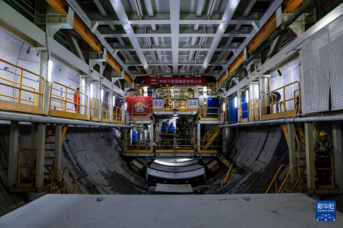 1月6日,“深江1號”盾構(gòu)機(jī)在珠江入??诤F矫嫦戮蜻M(jìn)。(新華社記者 毛思倩 攝)