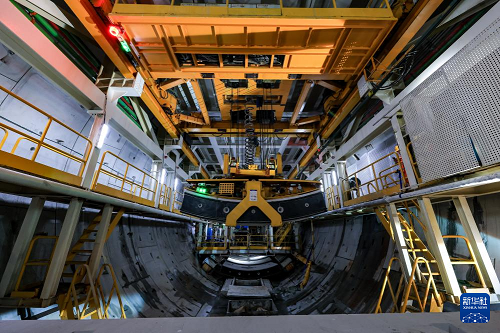 1月6日,中鐵十四局施工人員在隧道內(nèi)吊裝管片。(新華社記者 毛思倩 攝)