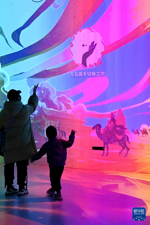 1月13日,小朋友在河北博物院數(shù)字互動體驗展中體驗互動。(新華社發(fā) 陳其保 攝)