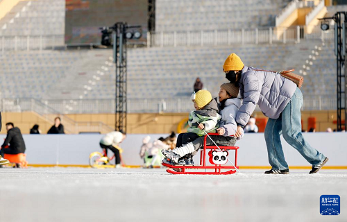 1月17日,人們在銀川文旅集團覽山公園落日冰場玩耍。(新華社記者 王鵬 攝)