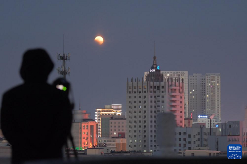 3月3日,在黑龍江省齊齊哈爾市,攝影愛好者在拍攝月全食。(新華社發(fā) 王勇剛 攝)