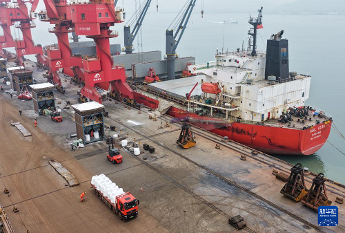 春耕農(nóng)忙時節(jié),江蘇連云港港暢通農(nóng)用物資綠色通道,對化肥等農(nóng)資做到隨到隨卸,裝車運輸全程高效流水作業(yè),確保春耕農(nóng)資供應(yīng)。