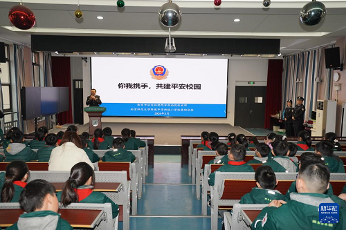 3月5日,在南京師范大學(xué)附屬中學(xué)新城小學(xué)怡康街分校的課堂上,來(lái)自南京市公安局建鄴分局南苑派出所的民警為學(xué)生們授課。(新華社發(fā) 劉臻睿 攝)