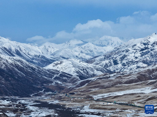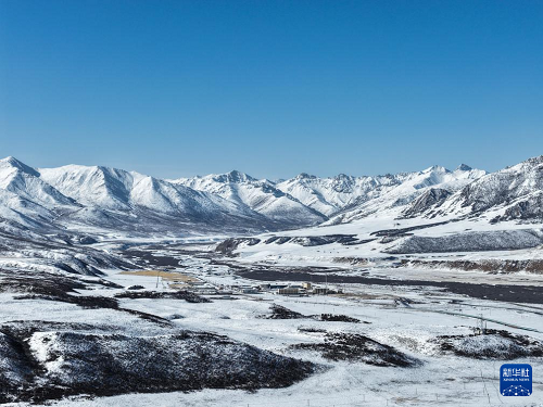 ?3月15日,青海省果洛藏族自治州瑪沁縣雪后迎來晴好天氣,群山被白雪覆蓋,與藍(lán)天相映,構(gòu)成一幅壯美的高原春日圖景(無人機照片)。(新華社記者 張龍 攝)