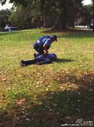 一名目擊導(dǎo)游說(shuō):“剛才有兩個(gè)客人在悉尼草坪上方便,讓警察看見(jiàn)了。警察追他們,他們提著褲子跑。他們惱羞成怒,要打警察。警察一個(gè)過(guò)肩摔,把一個(gè)男的摔地上骨折了。現(xiàn)在救護(hù)車,警車都過(guò)來(lái)了?!?/p>
