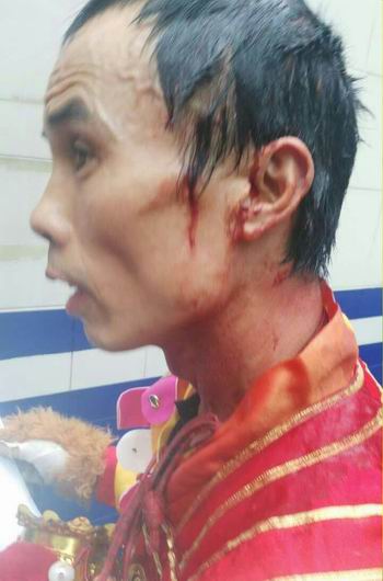當(dāng)日下午,“猴王”打架一事就是因?yàn)闋?zhēng)地盤而起。其中一名老“猴王”被一名年輕“猴王”用金箍棒打傷了左側(cè)頭部,鮮血直流。最后,經(jīng)過(guò)警方的協(xié)調(diào),雙方達(dá)成一致。打人者賠償被打者1500元醫(yī)藥費(fèi)。(圖片由警方提供)