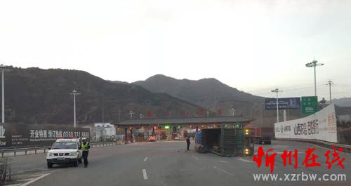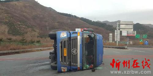 2016年11月19日17時(shí)00分許,山西交警高速二支隊(duì)九大隊(duì)民警翟躍、郭騏源接到報(bào)警稱:在五保高速12km(五臺(tái)山景區(qū)收費(fèi)站內(nèi)廣場(chǎng))處,有一輛藍(lán)色歐曼牌重型半掛貨車因操作不當(dāng),將掛車內(nèi)裝的鋼棒側(cè)滑,導(dǎo)致車輛側(cè)翻,造成車輛及路產(chǎn)不同程度損壞的道路交通事故。大隊(duì)民警第一時(shí)間趕赴現(xiàn)場(chǎng),及時(shí)詢問當(dāng)事人是否受傷,是否需要撥打“120”急救,并了解了當(dāng)時(shí)的事發(fā)情況。當(dāng)事人稱:“自己一個(gè)人開車回定襄,為省過(guò)路費(fèi),想著從五臺(tái)山景區(qū)高速口下,繞行低速回定襄,由于在下匝道時(shí),打方向過(guò)急,車速較快,將車上所拉的鋼棒側(cè)滑,造成車輛的側(cè)翻,所幸人沒有受傷?!敝螅窬瘜?duì)現(xiàn)場(chǎng)進(jìn)行勘查,并調(diào)取監(jiān)控視頻,發(fā)現(xiàn)車輛在轉(zhuǎn)彎時(shí),車速較快,駕駛員操作不當(dāng)是造成事故發(fā)生的原因。