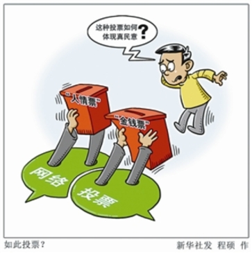 從紅遍大江南北的超女、快男開始,各種評(píng)選活動(dòng)日益增多,最萌寶貝、最美司機(jī)、最美景點(diǎn)等等,你方唱罷我登場(chǎng),好不熱鬧。投票手段也不斷演進(jìn),手機(jī)短信、網(wǎng)絡(luò)海選、朋友圈投票等,花樣翻新、不一而足。投票方式雖與時(shí)俱進(jìn),衡量投票結(jié)果的標(biāo)準(zhǔn)卻未變,票數(shù)多少固化為讓各方“信服”的指標(biāo),如何獲得票數(shù)則一概不論。