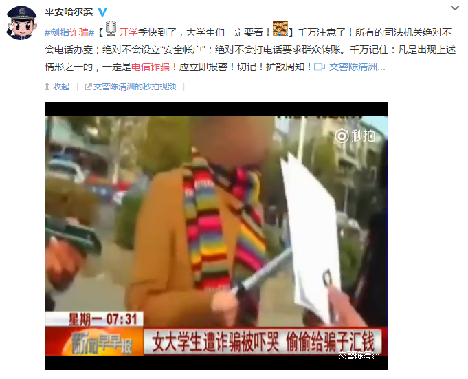 近日,一則新聞視頻在社交網(wǎng)絡(luò)上廣為流傳,一名女大學(xué)生聽(tīng)信了冒充刑警的詐騙犯,前往銀行匯款,幸好被銀行工作人員及時(shí)發(fā)現(xiàn)并制止。視頻中,直到女孩的家長(zhǎng)和真正的警察出現(xiàn),女孩仍然對(duì)騙子的話(huà)深信不疑,騙子忽悠功力可見(jiàn)一斑。