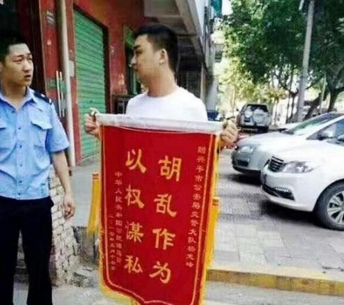 網(wǎng)絡(luò)相關(guān)信息顯示:在興平市公安局交警大隊門前,一名身穿白色上衣的男子拿著一面寫著“胡亂作為以權(quán)謀私”字樣的錦旗,而這面錦旗指名道姓是贈給興平市公安局交警大隊的一名警官。當時引來不少圍觀群眾,送完錦旗后,這名男子離開現(xiàn)場。