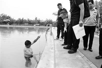 為了了解事發(fā)現(xiàn)場的具體情況,昨天,本案承辦法官前往事發(fā)地,對本案進(jìn)行現(xiàn)場勘驗(yàn)。根據(jù)現(xiàn)場情況,梅女士溺水的事發(fā)地位于一處露天泳池。經(jīng)勘驗(yàn),泳池約為長方形,南北分為兒童區(qū)和成人區(qū)。成人區(qū)水深1.3米,水池為平底,東西長約45米,南北長約30米。泳池四周各有一個(gè)救生觀察臺。梅女士出事地點(diǎn)位于泳池成人區(qū)的東南角,經(jīng)工作人員在水中實(shí)地測量,水深1.3米,最近的救生觀察臺距出事地點(diǎn)約為10米。
