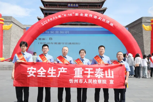 今年6月是第24個(gè)全國“安全生產(chǎn)月”。為深入貫徹習(xí)近平總書記關(guān)于安全生產(chǎn)工作的重要指示精神,持續(xù)推動(dòng)“八號檢察建議”落地落實(shí),6月16日,市檢察院黨組副書記、主持日常工作的副檢察長王金華帶隊(duì)參加全市“6·16安全宣傳咨詢?nèi)铡被顒?dòng),圍繞“人人講安全 個(gè)個(gè)會(huì)應(yīng)急”主題,積極開展普法宣傳活動(dòng),切實(shí)提升企業(yè)和群眾安全生產(chǎn)意識和防范能力。