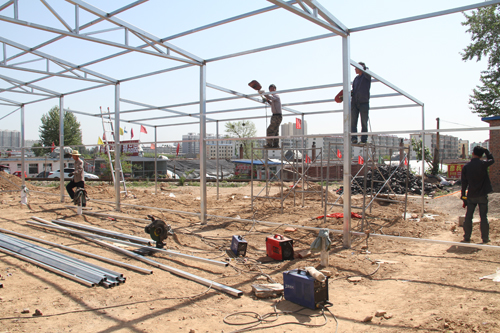 6月2日,原平市新原鄉(xiāng)柳巷村花農(nóng)新建的花卉博覽大廳開始焊接鋼架,大棚建成后,可擴(kuò)大花卉分區(qū)分類擺放,使消費(fèi)有了更好的花卉欣賞、選擇空間。成為原平最大的花卉超市。(褚震 攝)