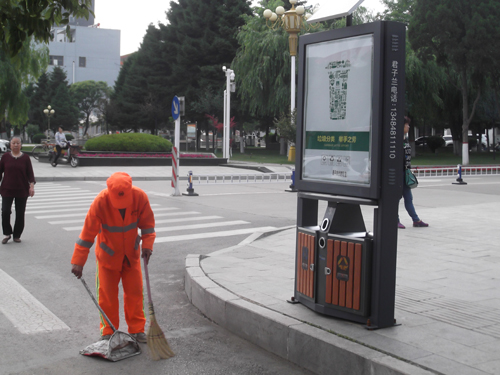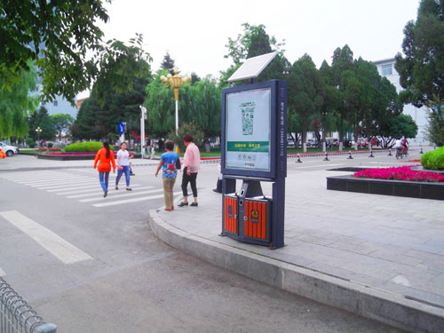 6月4日太陽能果皮箱亮相原平市街道兩旁。該市引進(jìn)的新型太陽能環(huán)保亮化分類果皮箱,帶有太陽能發(fā)電,晚上自動(dòng)亮燈照明,方便垃圾處理、回收利用,受到群眾歡迎。(趙春曉 攝)