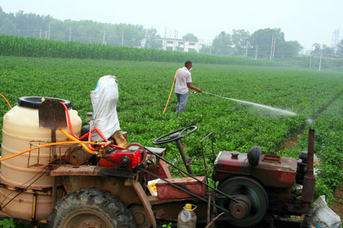 7月11日,原平市南灘村種植的三百畝北京紅辣椒長勢喜人。農(nóng)民們正在田間用電動(dòng)噴灑器噴灑葉面肥,該肥能增產(chǎn)增效防病害。該村調(diào)整種植產(chǎn)業(yè)結(jié)構(gòu),發(fā)展高效農(nóng)業(yè)種植,促進(jìn)增產(chǎn)增收。讓農(nóng)民們鼓起錢袋子。(趙春曉 攝)