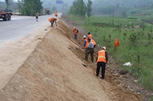 進入汛期以來,靜樂公路管理段將路基邊坡加固作為安全隱患治理,保障公路安全暢通的重要養(yǎng)護工作來抓,堅持不懈的做好強基固路工作。確保了預(yù)防性、預(yù)警性、安全性養(yǎng)護三到位,圖為養(yǎng)路工正在培土加固邊坡。(李永珍 攝)
