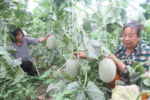 7月28日,原平市雙惠現(xiàn)代農(nóng)業(yè)示范園區(qū)的哈密瓜種植基地,鋼架溫室大棚里,藤蔓在架子上攀援,繁茂的枝葉間,一個個圓滾滾的小哈密瓜已經(jīng)探出了腦袋。近年來,該園區(qū)積極探索農(nóng)民工多元增收途徑,調整農(nóng)業(yè)種植結構。這次引進新疆哈密瓜種植取得成功,為我市發(fā)展高效農(nóng)業(yè)起到了示范作用。圖為工作人員正在查看哈密瓜長勢,預計八月初可收摘上市。(褚震 攝)