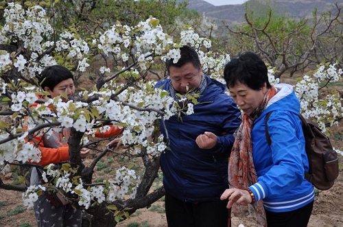 圖一 梨花盛開(kāi) 我心燦爛 西呼延村梨花園清新宜人 圖右為石潤(rùn)所