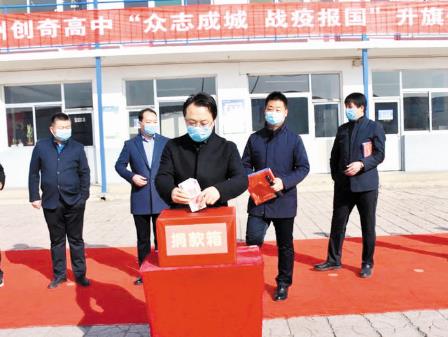 捐贈(zèng)儀式上,三方代表簽訂定向捐贈(zèng)協(xié)議書,市民政局社會(huì)捐助事務(wù)中心張志堅(jiān)主任為創(chuàng)奇高中頒發(fā)捐贈(zèng)證書。創(chuàng)奇高中黨支部書記王志明表示,疫情發(fā)生以來(lái),忻州市人民醫(yī)院在承擔(dān)繁重的全市病患救治工作的同時(shí),積極援鄂救助,醫(yī)護(hù)人員舍小家顧大家,奮戰(zhàn)在最危險(xiǎn)的一線,是我們的守護(hù)神,是最美的逆行者,全體創(chuàng)奇人應(yīng)該向他們致敬。與此同時(shí),創(chuàng)奇高中也積極響應(yīng)黨中央、省市區(qū)黨委的號(hào)召,用實(shí)際行動(dòng)支持我市疫情防控工作,在向全校師生發(fā)出捐款倡議后,得到廣大師生的鼎力支持。我們?yōu)槟茉谶@場(chǎng)全國(guó)性的戰(zhàn)役中貢獻(xiàn)自己的一點(diǎn)綿薄之力而感到榮幸。讓我們眾志成城,攜手共進(jìn),用大愛情懷筑起一道道阻擊疫情的牢固防線。