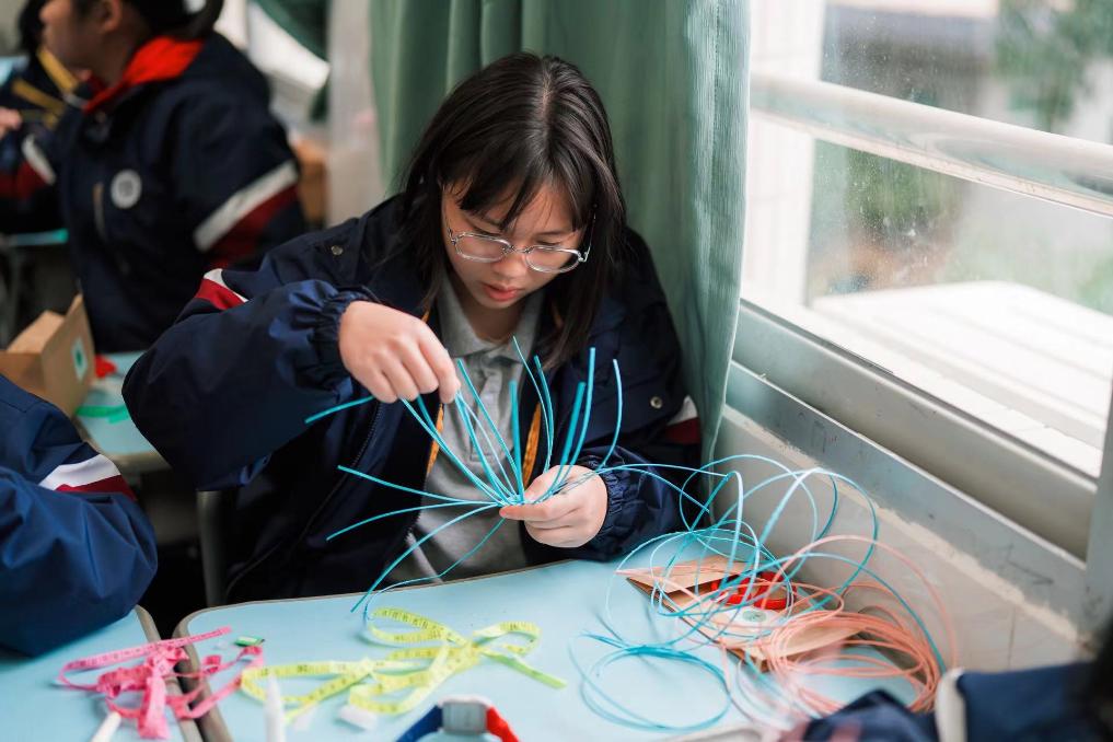 在廈門雙十中學(xué)開設(shè)的藤編課上,學(xué)生們發(fā)揮創(chuàng)意編制籃筐。(雙十中學(xué)供圖)