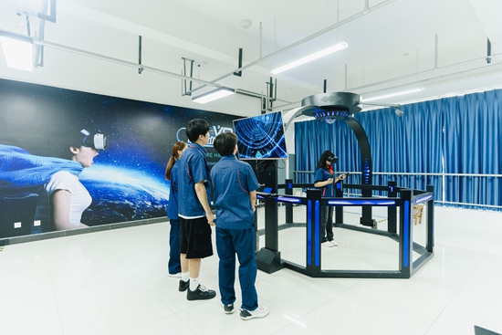 西安航空職業(yè)技術(shù)學(xué)院學(xué)生正在進(jìn)行VR畫面體驗測試。學(xué)校供圖