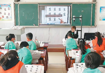 圖為寧夏回族自治區(qū)涇源縣城關(guān)第一小學的智慧書法課堂教學。資料圖片