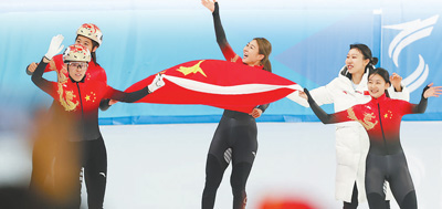 第九屆亞冬會(huì)短道速滑女子3000米接力A組決賽,中國(guó)隊(duì)奪得冠軍。新華社記者 楊 磊攝