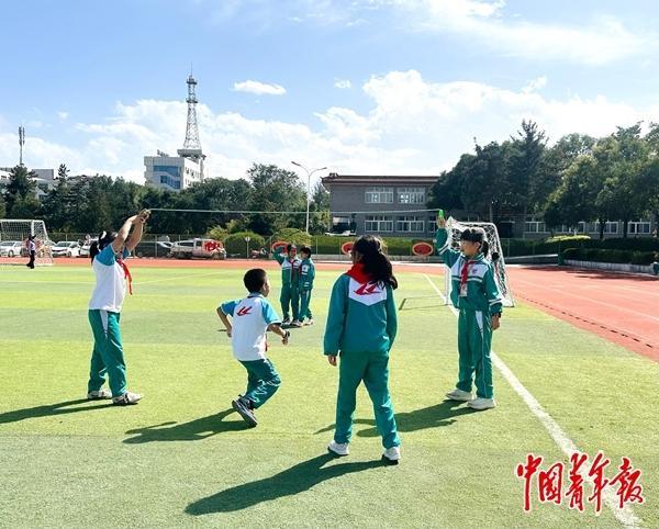 9月8日下午,記者來到固原市原州區(qū)第十一小學(xué)(以下簡稱“原州十一小”)。課間15分鐘,教學(xué)樓前的空地上,學(xué)生們跳繩、打沙包、跳方格,歡笑聲此起彼伏;30分鐘大課間時段,在學(xué)校老師陪伴下,56個班級2976名學(xué)生參加“迷你軍訓(xùn)”、武術(shù)、球類運動、冰壺訓(xùn)練、自由運動等,響亮的口號聲在操場回蕩;體育課上,孩子們以班級為單位,踢足球、打羽毛球、打籃球,一張張笑臉上洋溢著蓬勃朝氣。