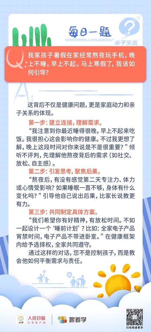 每日一題丨孩子假期在家,經常熬夜玩手機至凌晨,家長該如何引導?