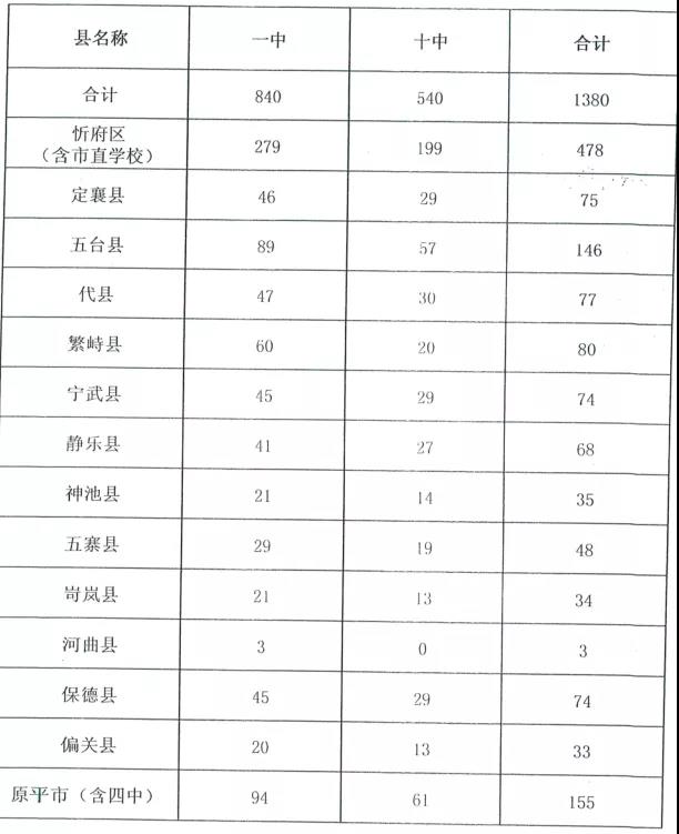 2.忻州市2020年忻州一中、十中招生指標(biāo)分縣計(jì)劃