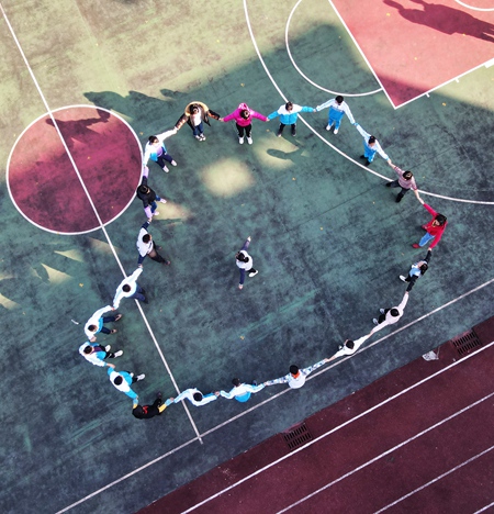 11月9日,在貴州省遵義市鳳岡縣特殊教育學(xué)校,老師帶領(lǐng)學(xué)生們?cè)诓賵?chǎng)做游戲。視覺(jué)中國(guó)供圖