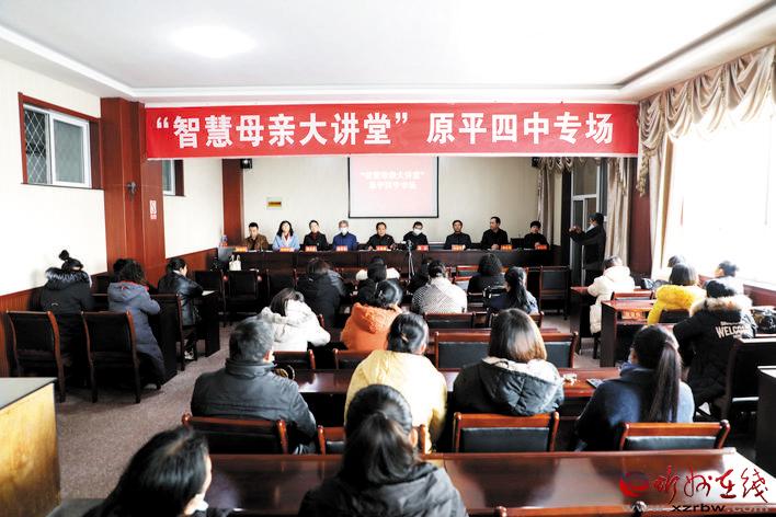 本報(bào)訊 近日,由原平市關(guān)工委、市教科局、市婦聯(lián)共同發(fā)起、組織、舉辦的全市“智慧母親大講堂”四中專場(chǎng)講座在該校6樓會(huì)議室舉行,來(lái)自該校城鄉(xiāng)的100余名家長(zhǎng)聆聽(tīng)了市關(guān)工委家庭教育講師團(tuán)講師華莉玲、四中教師張曉鳳的專題講解。