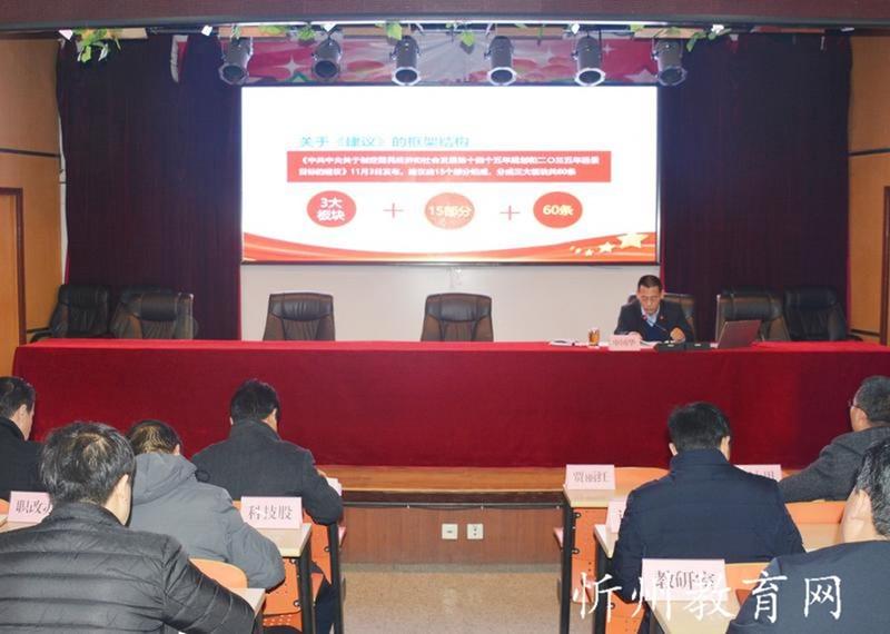 11月28日,原平市教科系統(tǒng)召開黨的十九屆五中全會精神宣講報告會,市委宣講團(tuán)成員、市教科局黨組書記、局長申國華作宣講報告。市教科局主任科員、機關(guān)支部書記賈毅主持報告會。教科系統(tǒng)各學(xué)校校長、書記,局機關(guān)各科室負(fù)責(zé)人參加報告會。