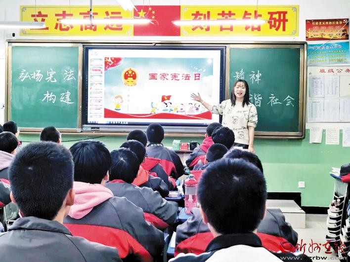 本報訊 2020年12月4日,是我國第七個國家憲法日,為大力弘揚憲法精神,向?qū)W生普及憲法和法律知識,引導(dǎo)青少年學(xué)生自覺成為憲法的忠實崇尚者、自覺遵守者、堅定捍衛(wèi)者,營造良好的校園法治教育環(huán)境和氛圍,北方中學(xué)開展了以“弘揚憲法精神,護航少年成長”為主題的“12·4憲法日”系列活動。