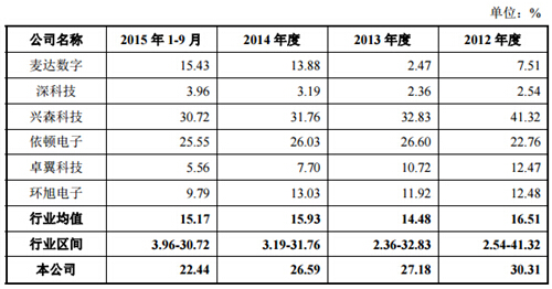但易德龍的盈利能力卻逐年下滑,招股書顯示,公司主營業(yè)務(wù)毛利率在報(bào)告期內(nèi)持續(xù)下降,2012年為30.31%,到2015年9月末已降至22.44%。