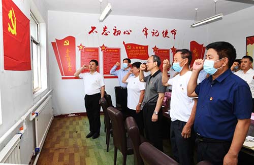 鄭連生一行與基層黨員重溫入黨誓詞。劉紀森 攝