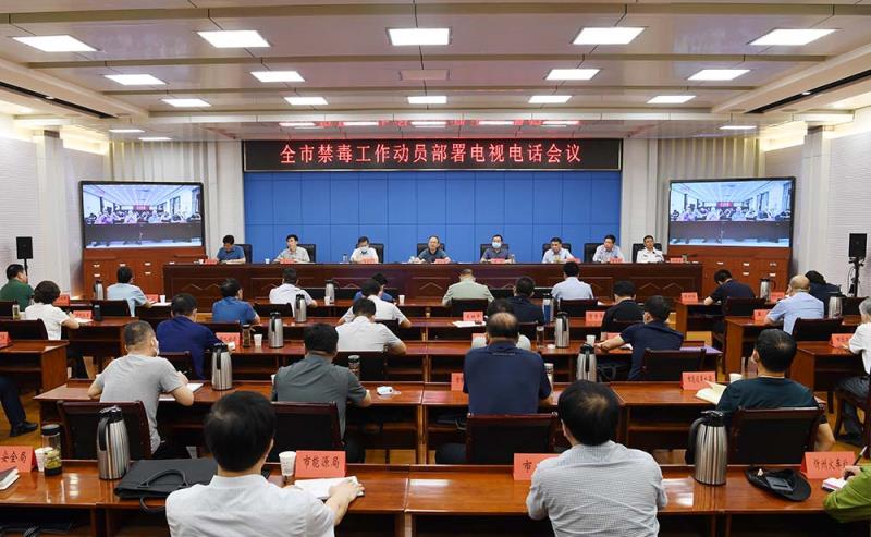 全市禁毒工作動員部署電視電話會議。劉紀(jì)森 攝
