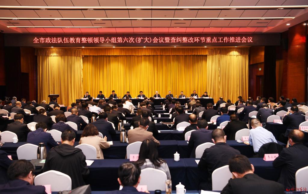本報(bào)訊 (記者楊峰雷)4月20日,市委召開市政法隊(duì)伍教育整頓領(lǐng)導(dǎo)小組第六次(擴(kuò)大)會(huì)議暨查糾整改環(huán)節(jié)重點(diǎn)工作推進(jìn)會(huì)議。省政法隊(duì)伍教育整頓第四駐點(diǎn)指導(dǎo)組組長(zhǎng)賈明建講話。市委書記、市政法隊(duì)伍教育整頓領(lǐng)導(dǎo)小組組長(zhǎng)鄭連生主持并講話。市委副書記、政法委書記、宣傳部長(zhǎng)、市政法隊(duì)伍教育整頓領(lǐng)導(dǎo)小組常務(wù)副組長(zhǎng)郭奔勝安排部署查糾整改環(huán)節(jié)重點(diǎn)工作。省政法隊(duì)伍教育整頓第四駐點(diǎn)指導(dǎo)組副組長(zhǎng)蔚崇通、劉銀祥出席會(huì)議。市委常委、紀(jì)委書記、監(jiān)委主任、市政法隊(duì)伍教育整頓領(lǐng)導(dǎo)小組副組長(zhǎng)劉卓良傳達(dá)省政法隊(duì)伍教育整頓領(lǐng)導(dǎo)小組第三次會(huì)議暨查糾整改環(huán)節(jié)重點(diǎn)工作推進(jìn)會(huì)精神。市領(lǐng)導(dǎo)溫建軍、崔向松、袁小波以及市中級(jí)人民法院院長(zhǎng)劉碩才、市人民檢察院檢察長(zhǎng)周東曙分別發(fā)言并安排相關(guān)工作。