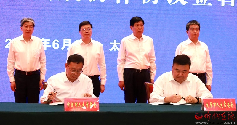 會前,太原、忻州兩市人大常委會共同簽署太忻經(jīng)濟(jì)一體化發(fā)展協(xié)作協(xié)議。