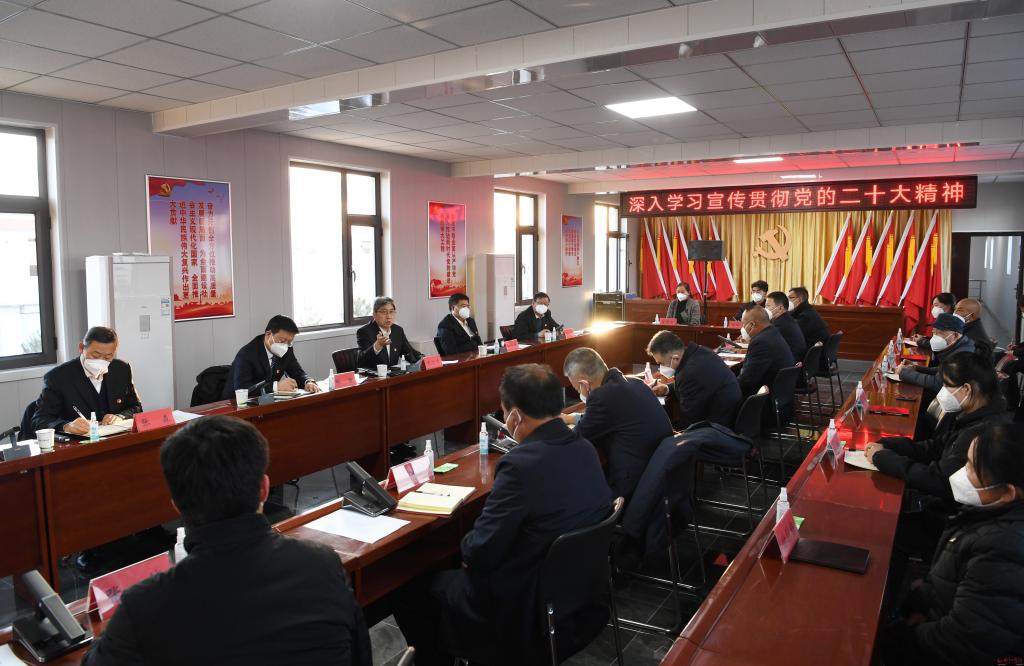 朱曉東指出,黨的二十大是在全黨全國各族人民邁上全面建設(shè)社會主義現(xiàn)代化國家新征程、向第二個百年奮斗目標(biāo)進(jìn)軍的關(guān)鍵時刻召開的一次十分重要的大會,是一次高舉旗幟、凝聚力量、團(tuán)結(jié)奮進(jìn)的大會,在黨和國家事業(yè)發(fā)展進(jìn)程中具有重大里程碑意義。黨的二十大提出一個統(tǒng)攝全局的主題,發(fā)出“全面建設(shè)社會主義現(xiàn)代化國家、全面推進(jìn)中華民族偉大復(fù)興”的偉大號召;明確一條中國式現(xiàn)代化道路,錨定未來戰(zhàn)略藍(lán)圖和發(fā)展航標(biāo);選出新一屆黨中央堅(jiān)強(qiáng)領(lǐng)導(dǎo)集體,凝聚了全黨全軍全國人民的高度共識和共同意愿,我們要深刻領(lǐng)悟“兩個確立”的決定性意義,不斷增強(qiáng)“四個意識”、堅(jiān)定“四個自信”、做到“兩個維護(hù)”。