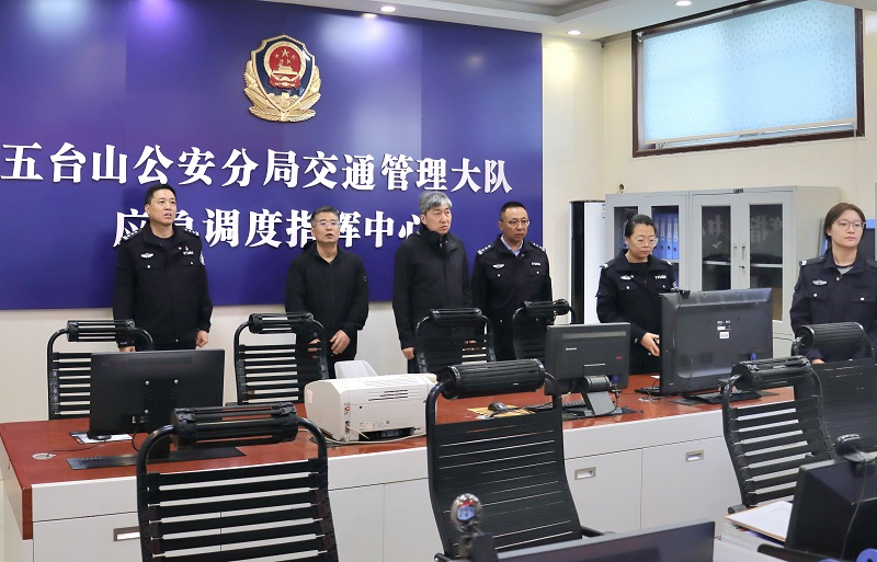 朱曉東在五臺山交警大隊(duì)檢查值班值守情況。李行攝